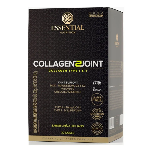 Cuide das suas articulações com o Collagen 2 Joint da Essential Nutrition, um suplemento premium formulado para fornecer suporte nutricional à saúde articular. Esta fórmula exclusiva combina colágenos tipo I e tipo II não desnaturado (UC-II®), enriquecidos com vitaminas e minerais essenciais.