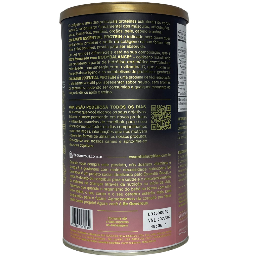 Descubra o poder da proteína em sua forma mais pura com o Collagen Essential Protein da Essential Nutrition. Este suplemento premium é formulado exclusivamente com BODYBALANCE®, um colágeno hidrolisado em peptídeos obtido por meio de hidrólise enzimática controlada e patenteada, garantindo máxima biodisponibilidade e eficácia. Enriquecido com vitamina C, que auxilia na formação do colágeno e no metabolismo de proteínas e gorduras, este produto é ideal para quem busca uma fonte proteica de alta qualidade e fácil digestão.